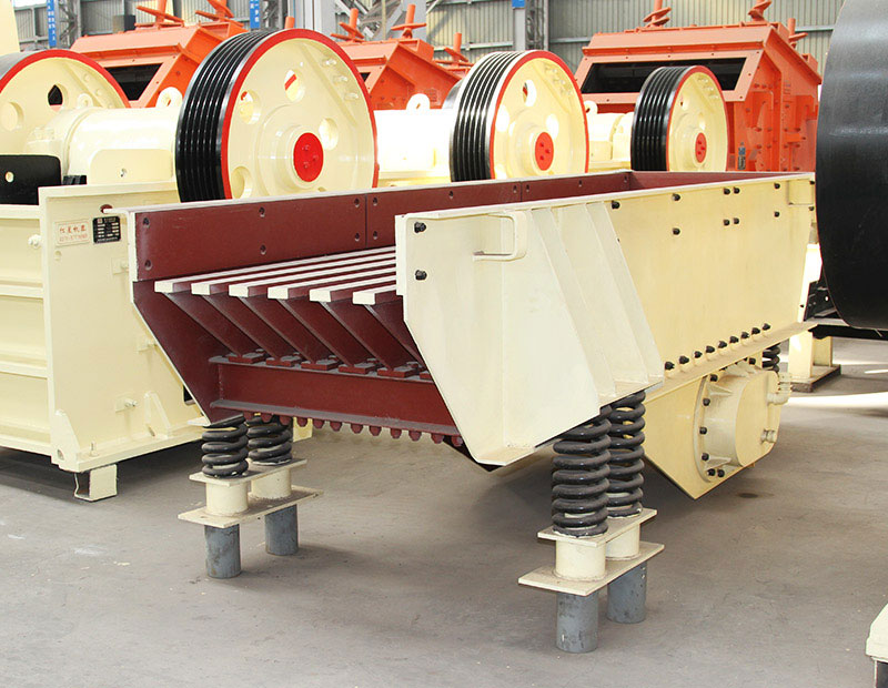 振動(dòng)給料機(jī)又稱振動(dòng)喂料機(jī)。振動(dòng)給料機(jī)在生產(chǎn)流程中,可把塊狀、顆粒狀物料從貯料倉中均勻、定時(shí)、連續(xù)地給到受料裝置中去,在砂石生產(chǎn)線中可為破碎機(jī)械連續(xù)均勻地喂料,并對(duì)物料進(jìn)行粗篩分。