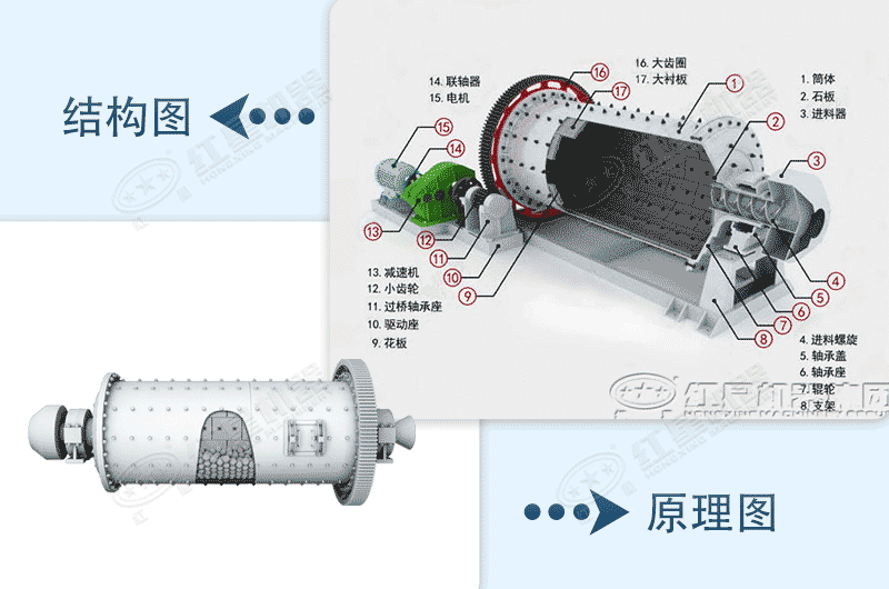 1.5米乘4.5米:每小時(shí)可處理3-6噸的礦渣,也屬小型球磨機(jī),配套功率110kw,裝球量11噸,進(jìn)料粒度25mm以下。
